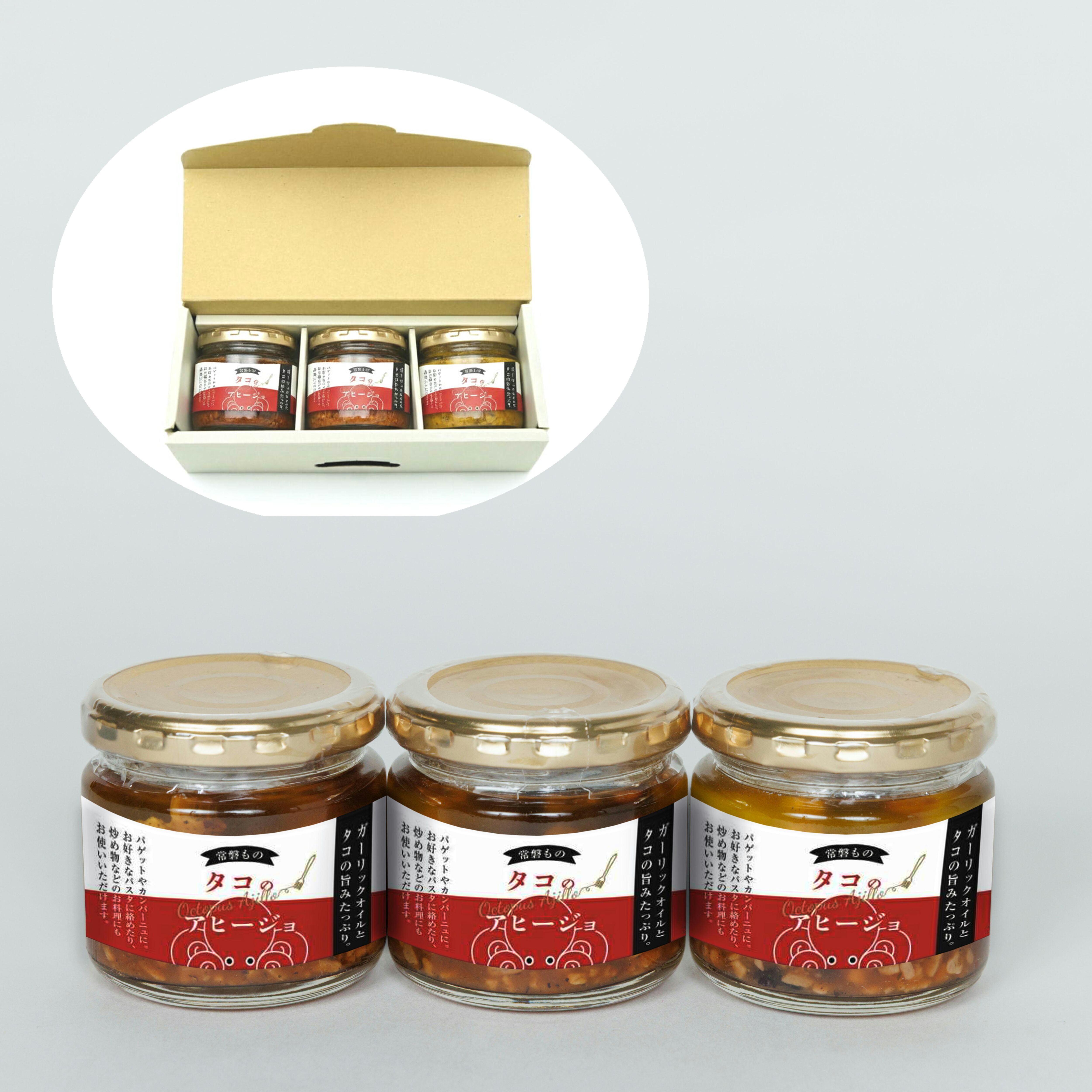 名称:調味料 原材料名:たこ(福島県産)、食用なたね油(国内製造)、オリーブオイル、マッシュルーム(国産)、エリンギ(国産)、フライドガーリック、ぶなしめじ(国産)、しいたけ(国産)、ひらたけ(国産)、食塩、砂糖、フライドオニオン、にんにく、香辛料、チキンエキス、ポークエキス、パセリ、食用風味油(牛肉を含む)、たん白加水分解物(大豆を含む)、ゼラチン/調味料(アミノ酸等)、酸化防止剤(ビタミンE)、pH調整剤 内容量:110g×3