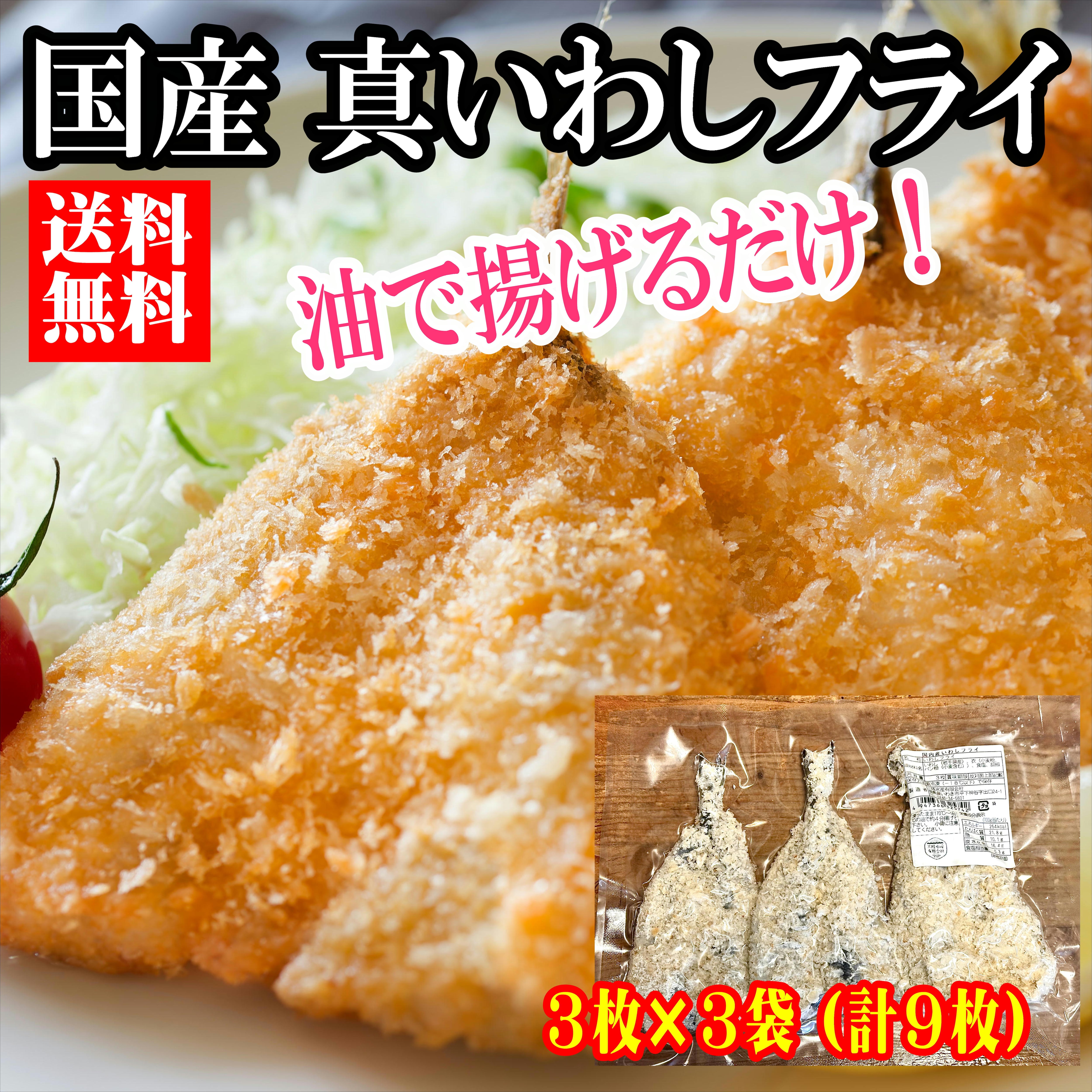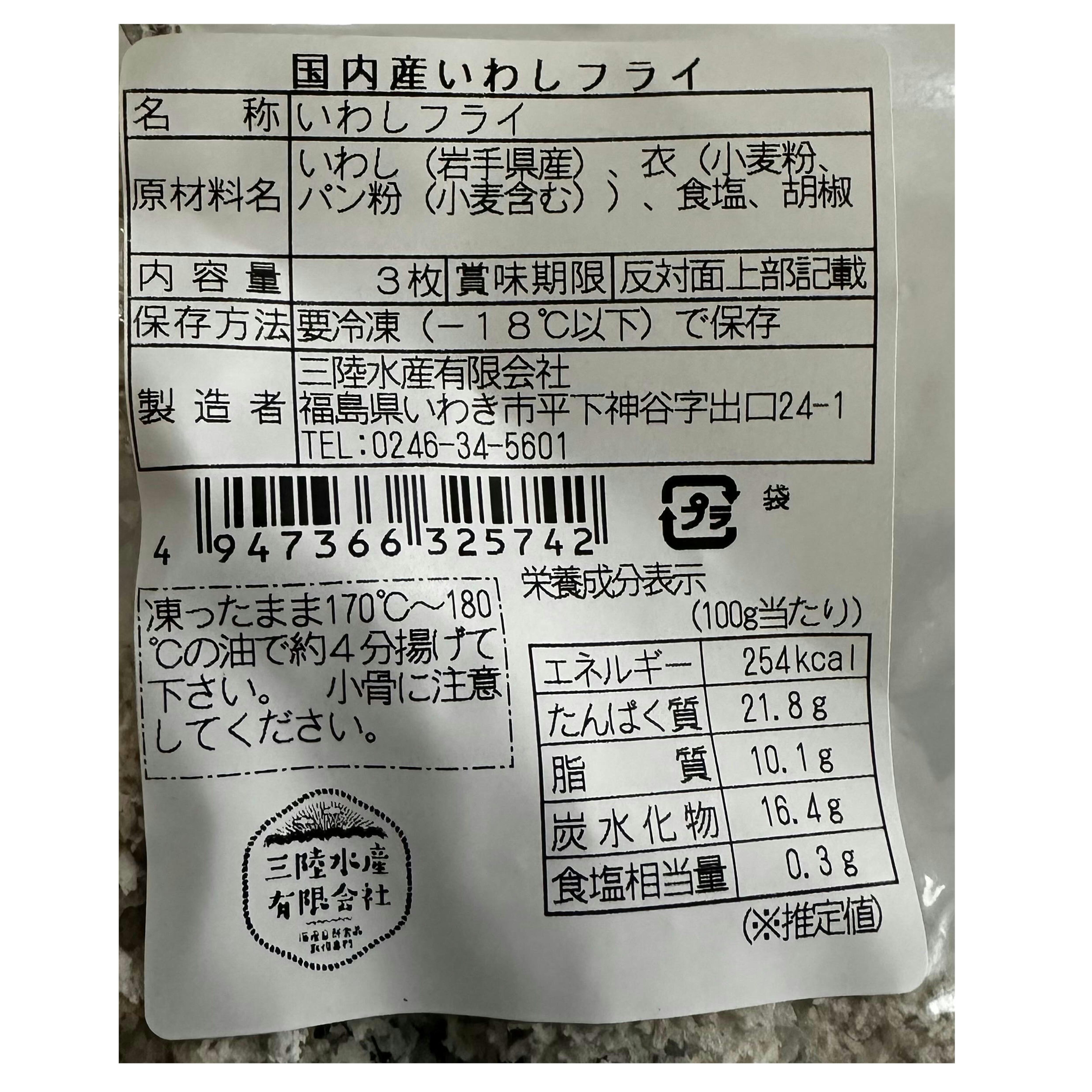 食べ応えがある大きいサイズの真いわしを「パン粉」「塩」「胡椒」のみで味付けしました。