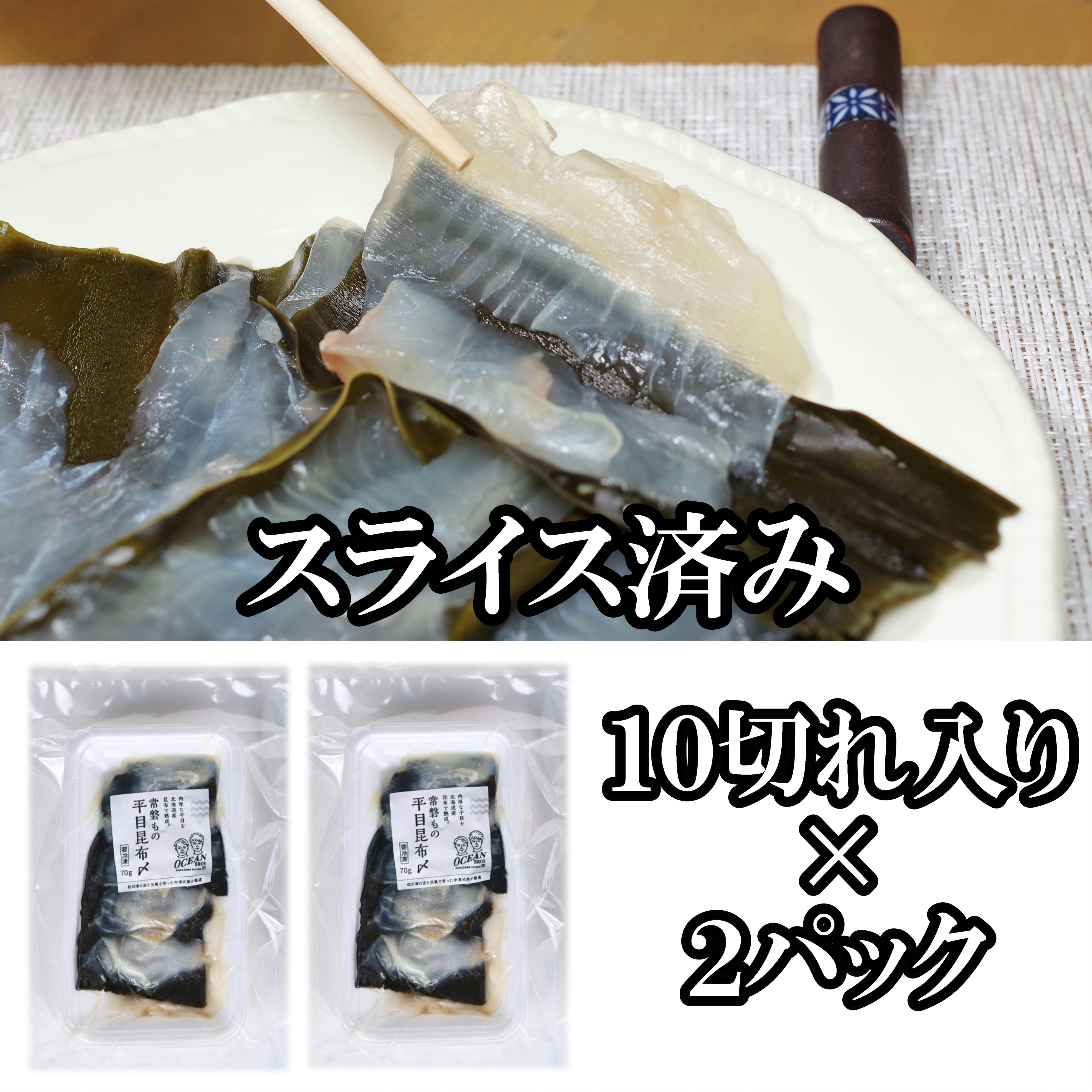 ◇鮃昆布〆スライス70g:採れたての鮃をロイン加工し北海道産の昆布で寝かせました。食べやすくスライス済み。