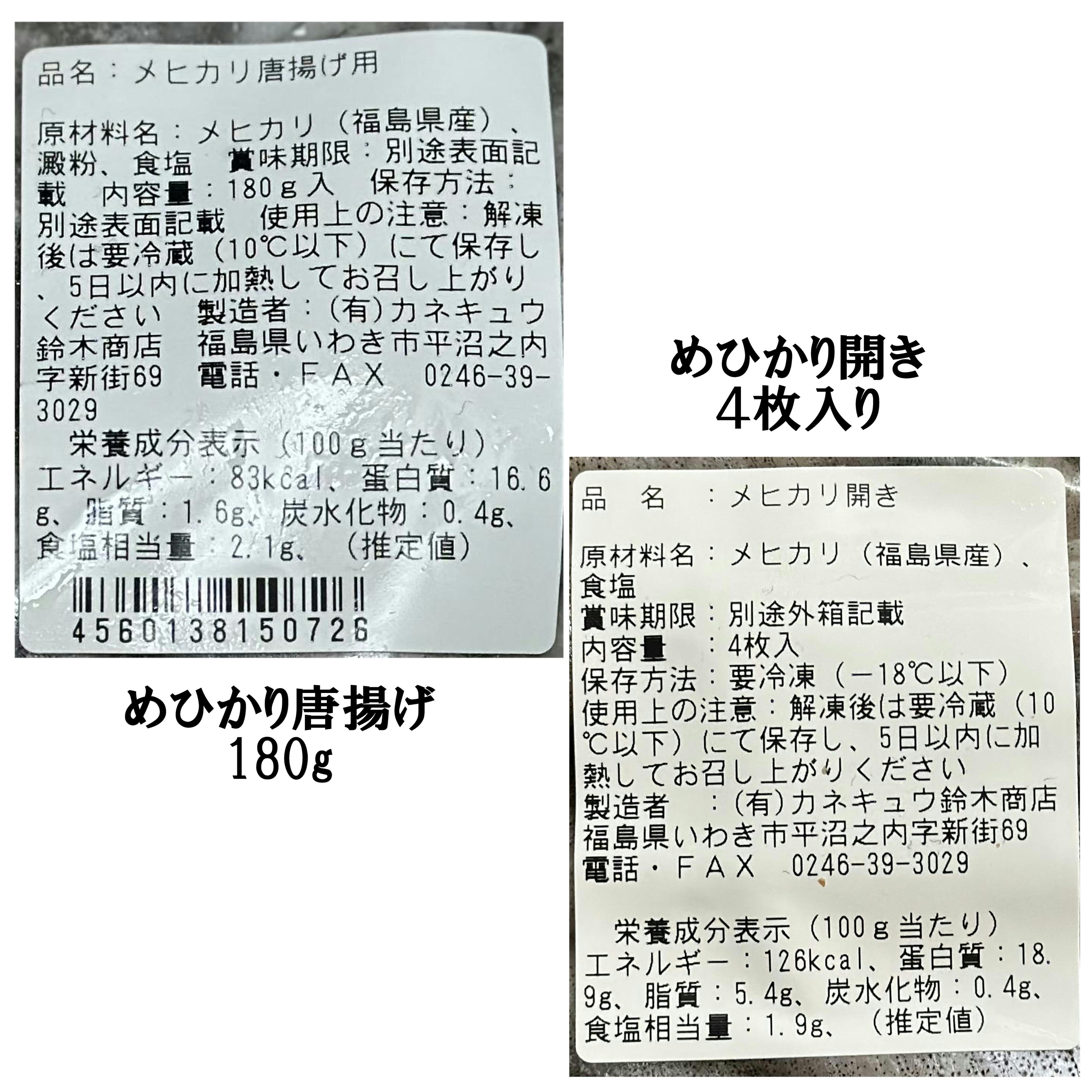 ◇常磐もの「めひかり唐揚げ」「めひかり開き」セット