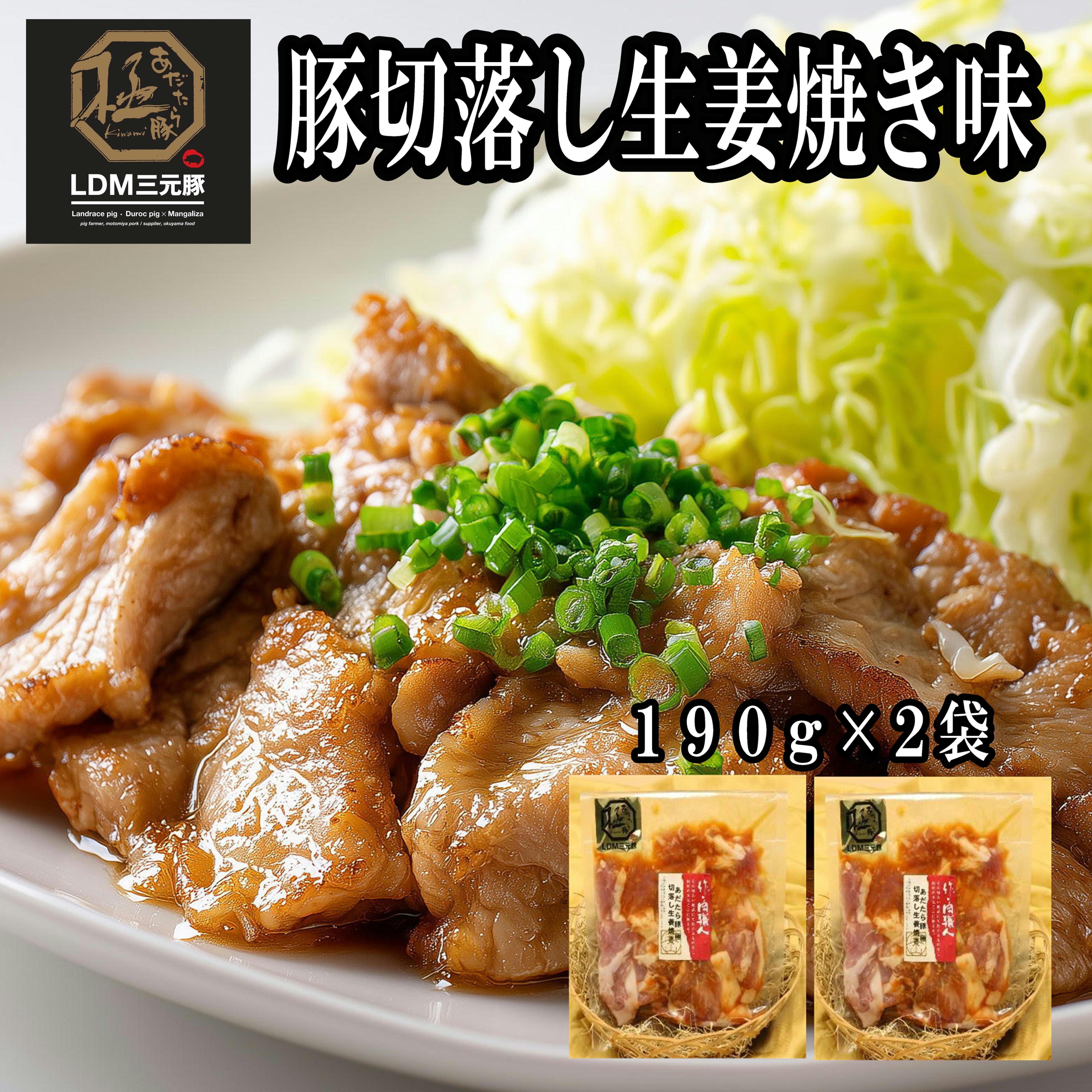 豚生姜焼き・・・フライパンでの加熱、特選醤油をベースに国産ねぎを合わせ、サイズの異なる生姜を使用コク深い味わいに仕上げました。190g×2袋